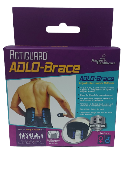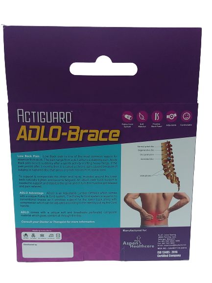 - ADLO is a functional Brace that provides a specific degree of pressure around the waist and keeps the spine on its axis so that the muscles around the spine will be relaxed.