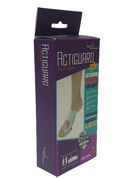 Bunion is a painful bony bump that forms on the base of big toe. Actiguard Bunion splint pulls the Big toe towards the middle of the body and stops further progression and corrects bunion.