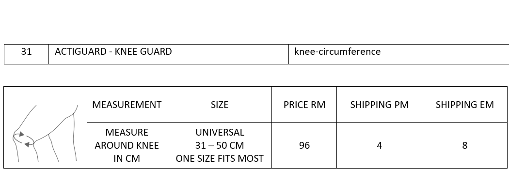 Actiguard knee guard is a convenient wrap around knee guard with Universal size. Ideal for sports activities, walking and jogging.