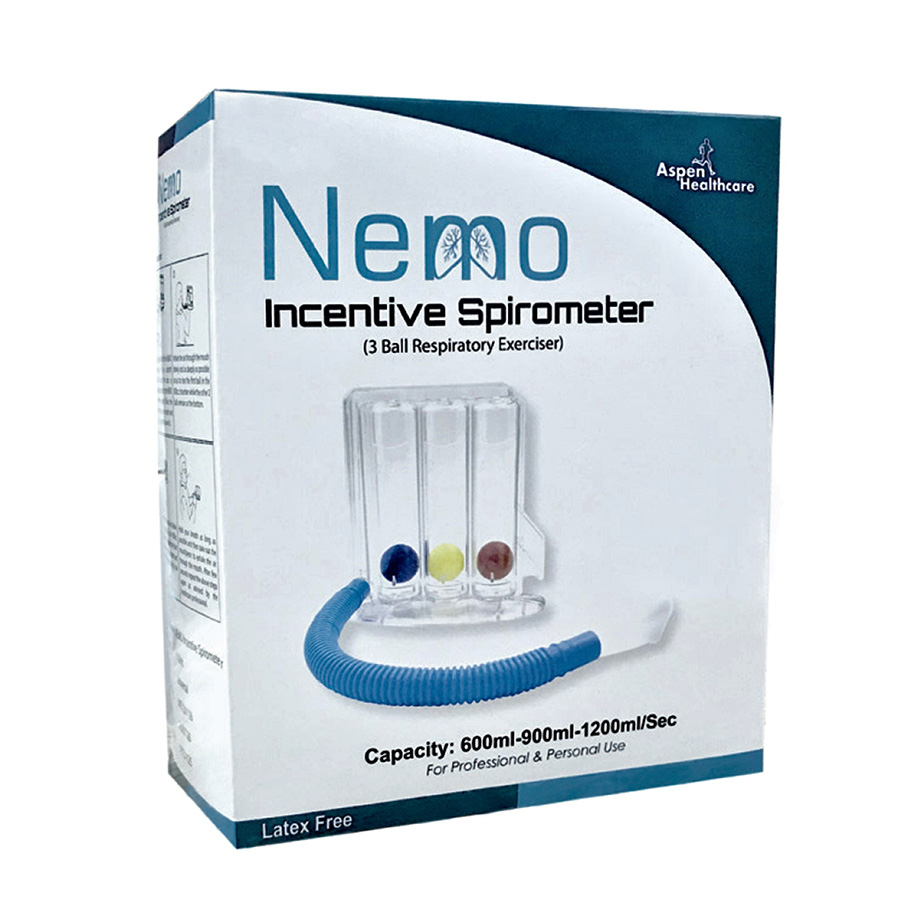 Nemo Incentive Spirometer helps patients to improve their Lung function and to prevent pulmonary complications. Nemo Incentive Spirometer improve respiratory function and helps in recovery.